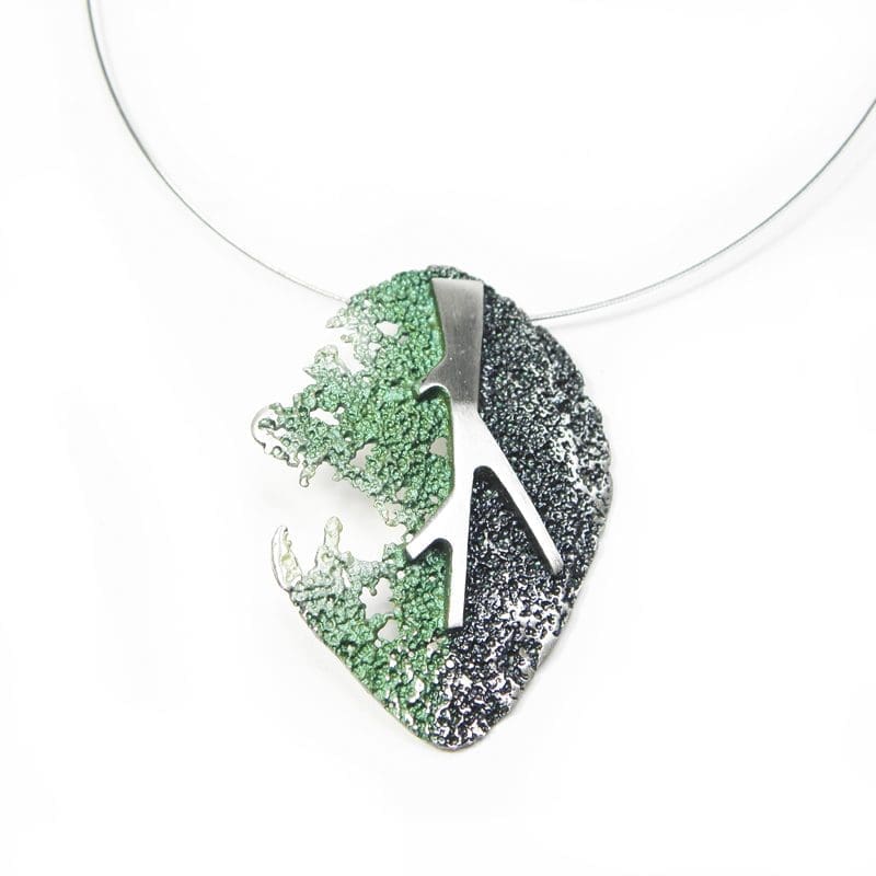 Compuesto por pieza 3×4,2cm, nervio central plata mate y base óxido con pigmento disponible en varios colores (consultar)