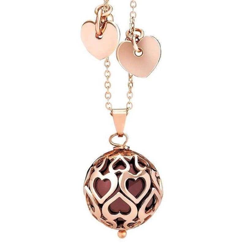 COLGANTE: Bola calada con corazones pulida con baño oro rosa e interior color burdeos – 14mmØ