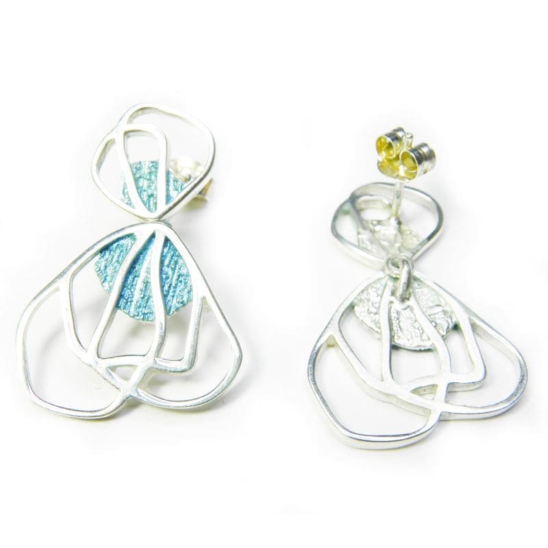 Pendientes cierre presión 2 piezas pétalos en plata de ley 925